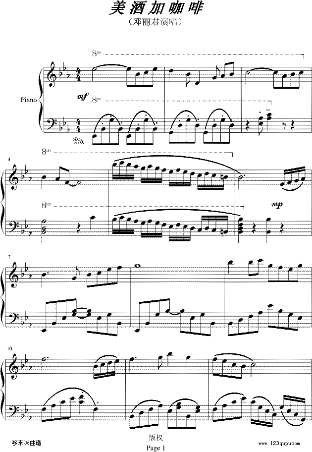 [钢琴谱]美酒加咖啡-邓丽君 未知