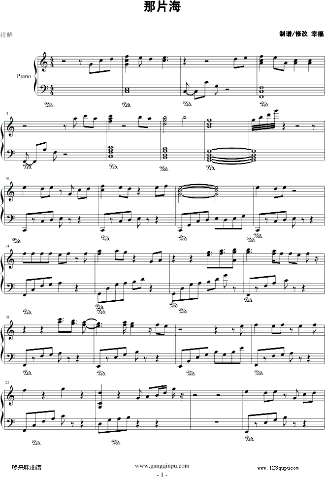 [钢琴谱]那片海-韩红 未知