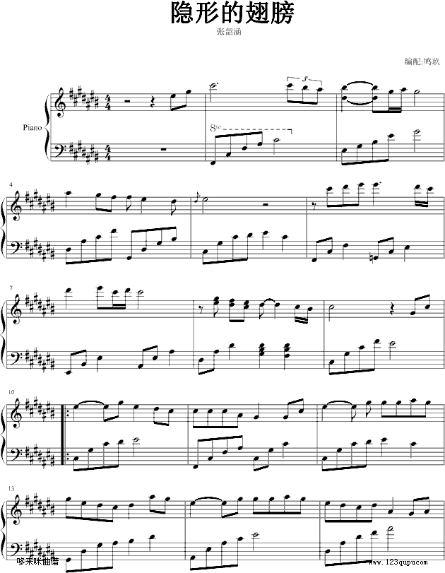 [钢琴谱]隐形的翅膀-张韶涵 未知
