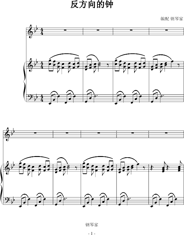 [钢琴谱]反方向的钟(钢琴五线谱)[不同版本] 周杰伦