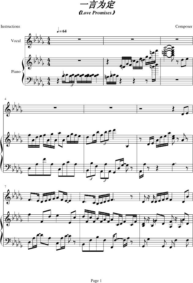 [钢琴谱]一言为定-(弹唱版) 黎明