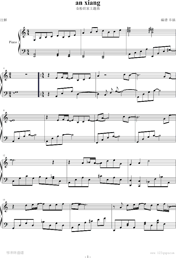 [钢琴谱]Dim Aroma(暗香)-沙宝亮 未知