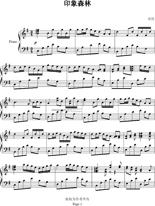 [钢琴谱]印象森林 乐侠