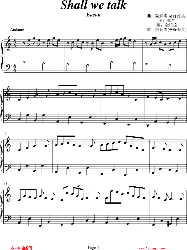 [钢琴谱]Shall We Talk-陈奕迅 未知