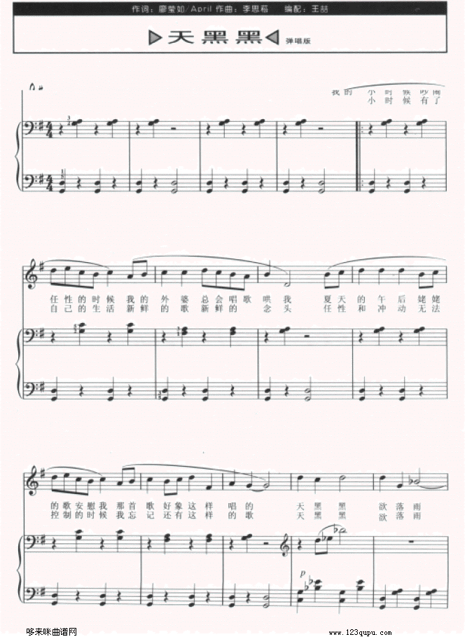 [钢琴谱]天黑黑-弹唱版-孙燕姿 未知