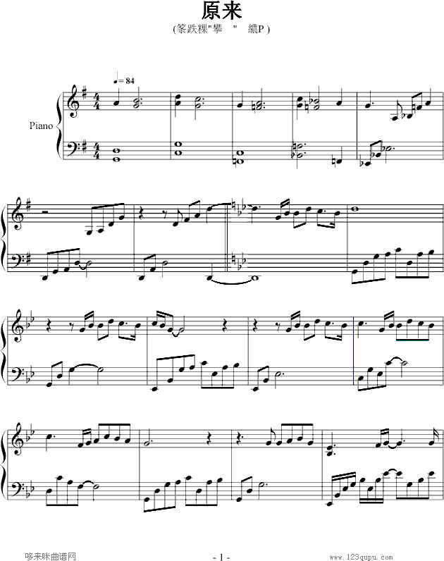 [钢琴谱]原来-恋香-影视 未知