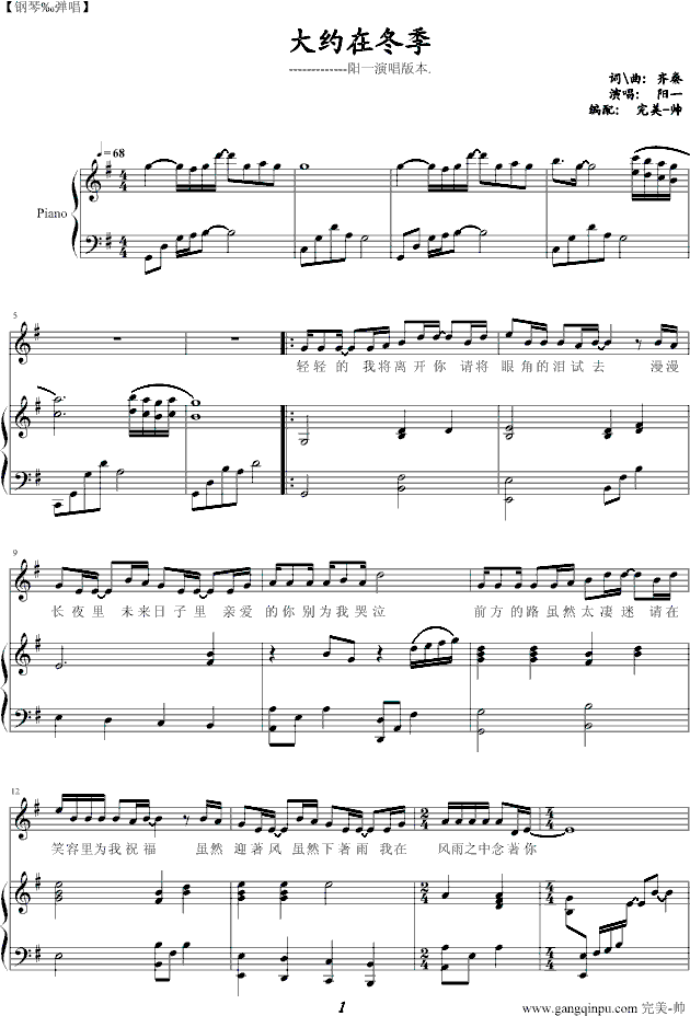 [钢琴谱]大约在冬季-钢琴弹唱版 阳一