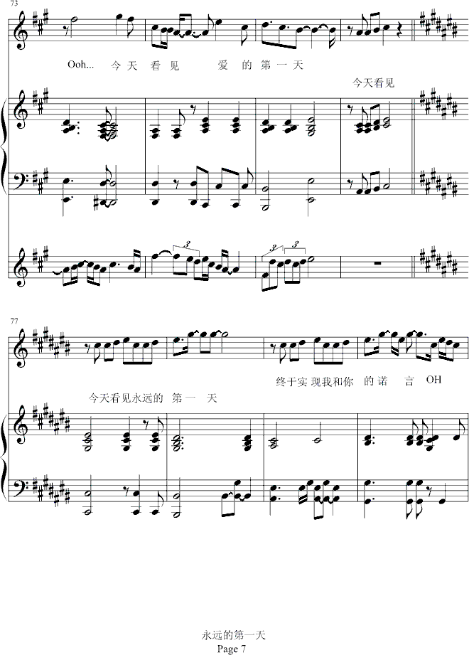 [钢琴谱]永远的第一天-弹唱版-王力宏 未知