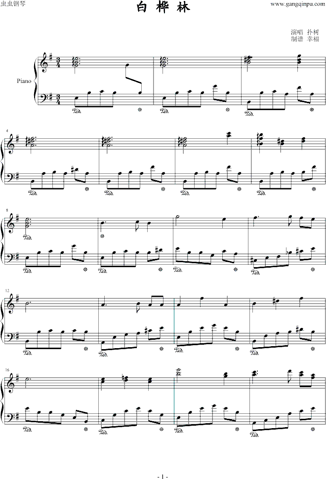 [钢琴谱]白桦林 朴树