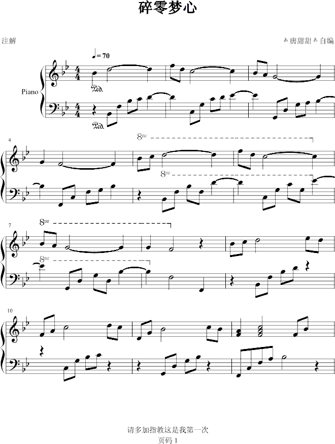 [钢琴谱]碎零梦心-ぁ唐甜甜ぁ 未知