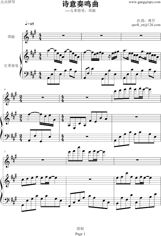 [钢琴谱]诗意奏鸣曲-克莱德曼 未知