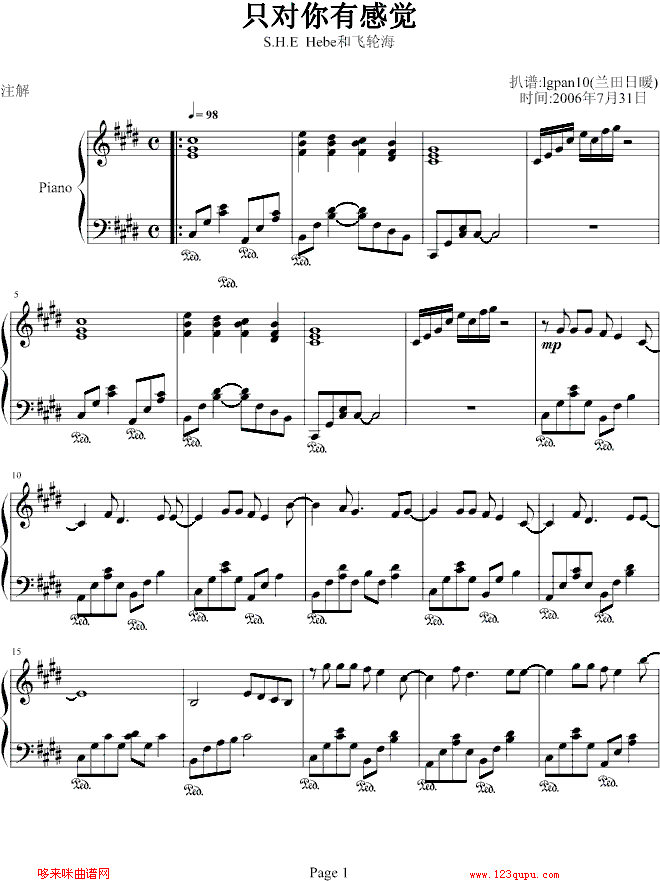 [钢琴谱]只对你有感觉-S.H.E 未知