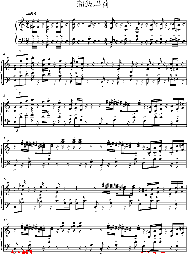 [钢琴谱]超级玛莉-超级玛莉 未知