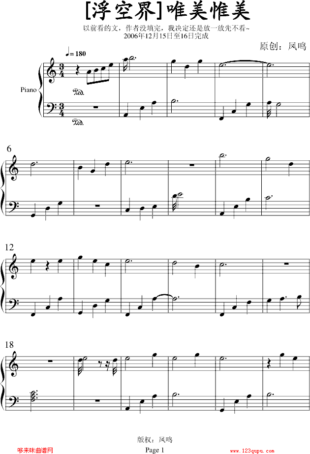 [钢琴谱][浮空界]唯美惟美-凤鸣 未知