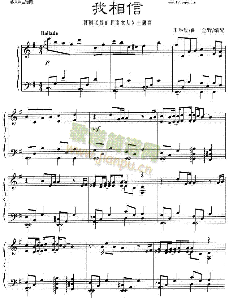 [钢琴谱]我相信(韩剧《我的野蛮女友》主题曲)[钢琴曲谱] 未知