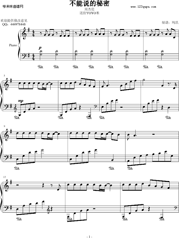 [钢琴谱]不能说的秘密-周杰伦 未知