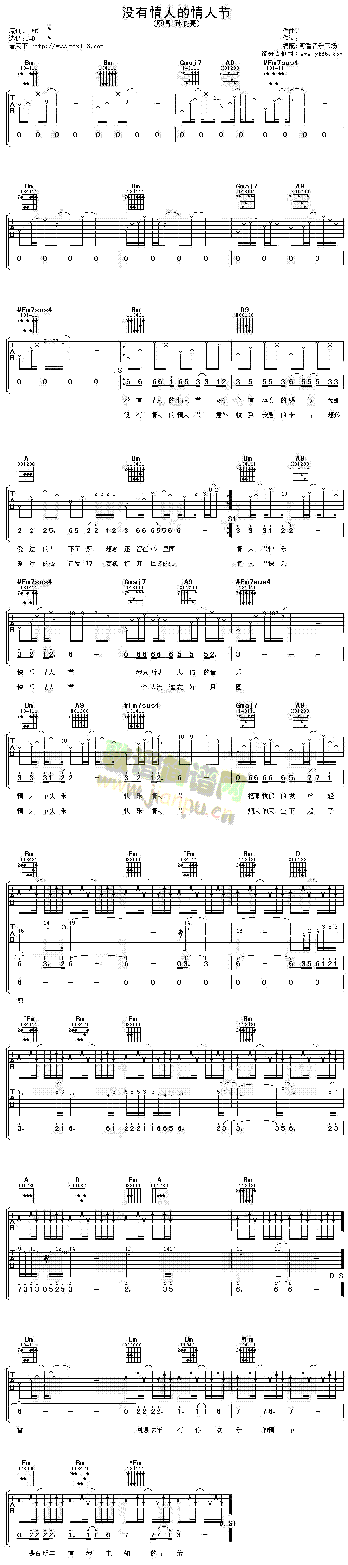 [吉他谱]没有情人的情人节 孙晓亮
