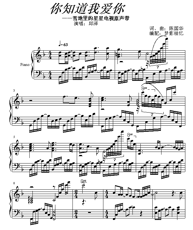 [钢琴谱]你知道我爱你-邱哲 未知