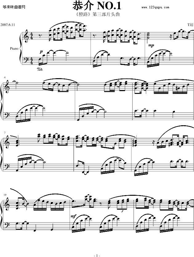 [钢琴谱]恭介 NO.1-动漫影视 未知