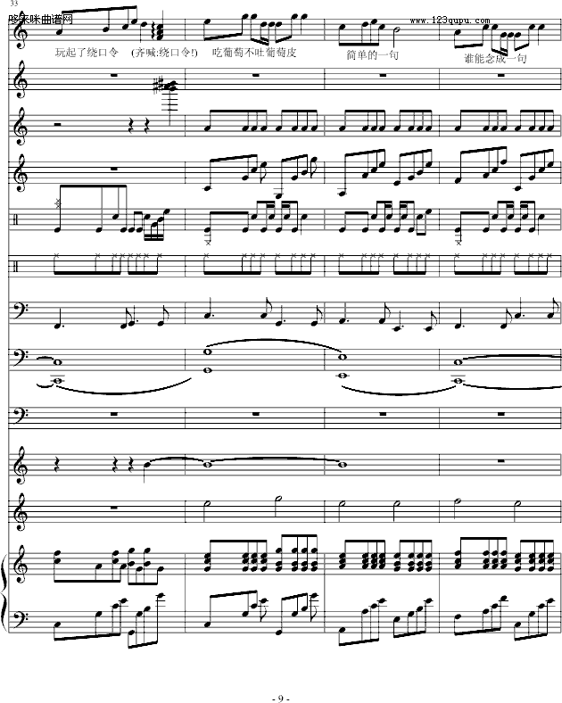 [钢琴谱]吃葡萄不吐葡萄皮 圆圆怕蚊子