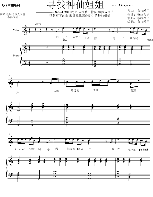 [钢琴谱]寻找神仙姐姐-布拉希子 未知