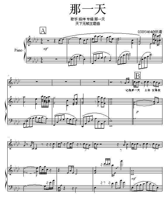 [钢琴谱]那一天-弹唱版-天下无贼主题曲-杨坤 未知