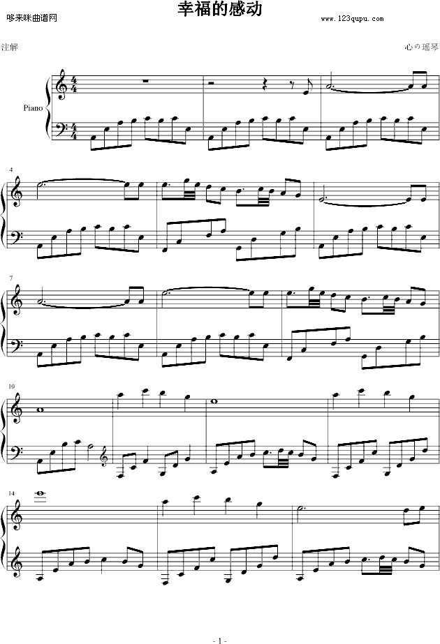 [钢琴谱]幸福的感动-心の瑶琴 未知