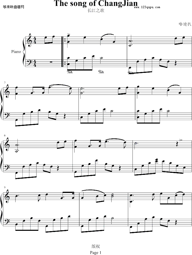 [钢琴谱]长江之歌(《话说长江》主题曲)[钢琴曲谱] 未知