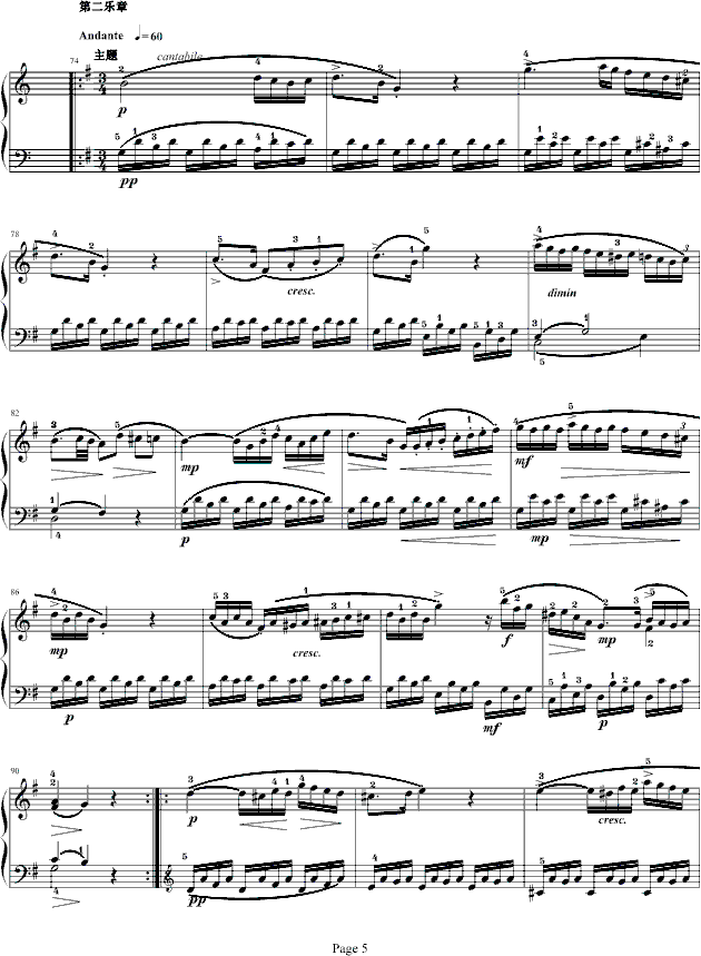 [钢琴谱]C大调第16钢琴奏鸣曲K.545第二乐章 莫扎特