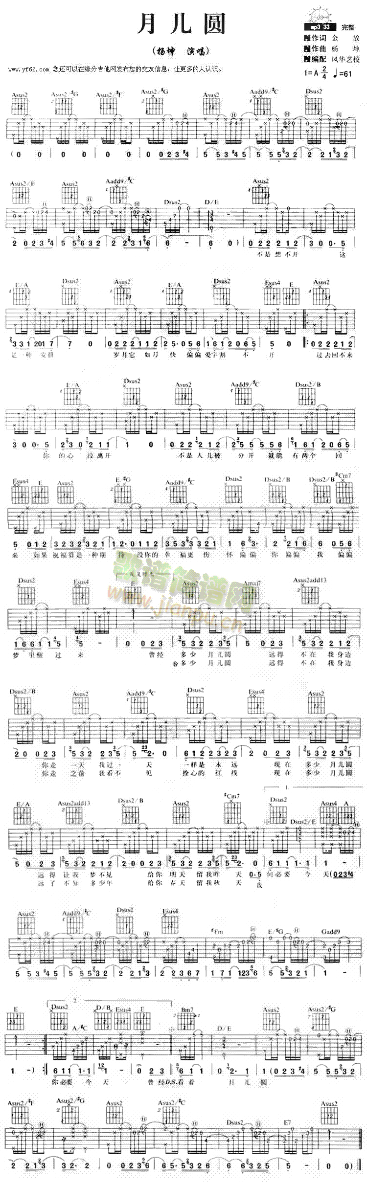[吉他谱]月儿圆-杨坤 杨坤
