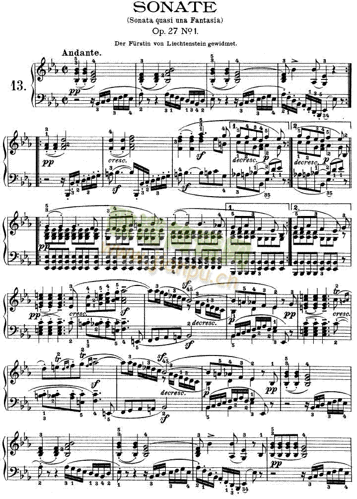 > 第十三钢琴奏鸣曲-(Op.27 No.1)