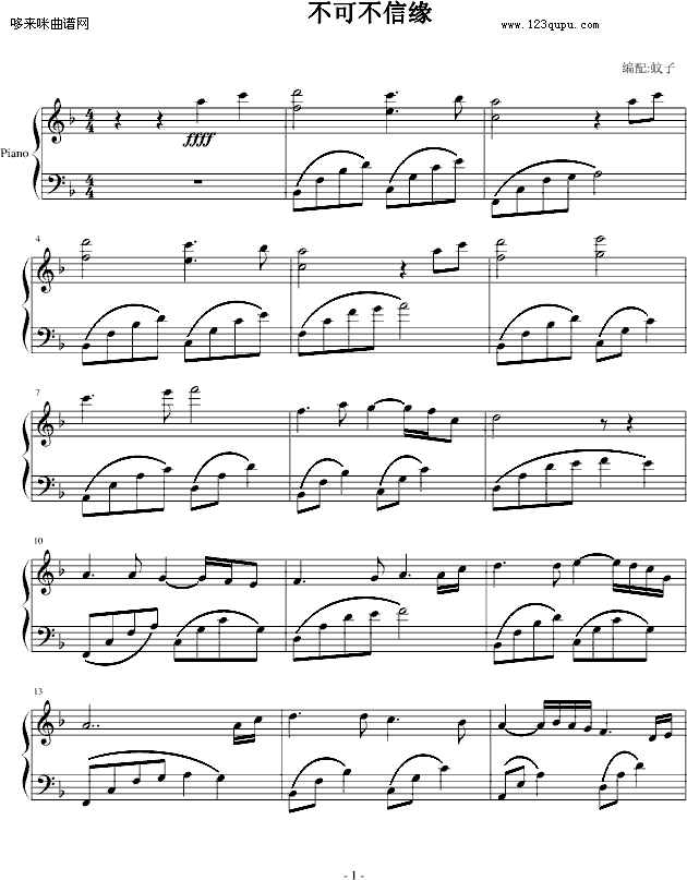 [钢琴谱]不可不信缘 未知