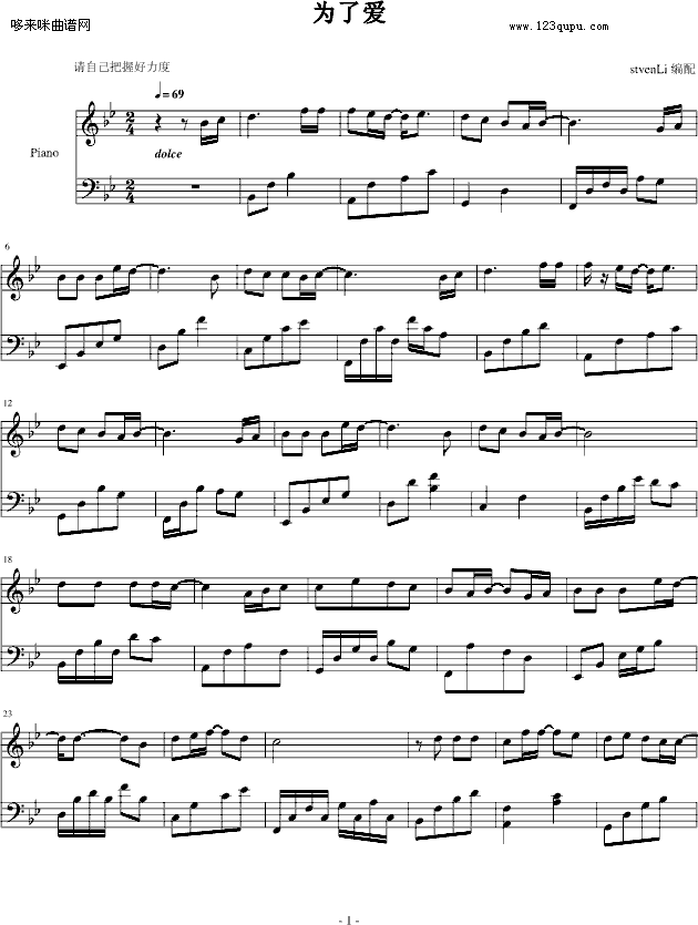 [钢琴谱]为了爱-劲乐团-游戏 未知