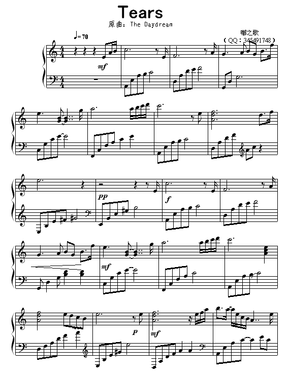 [钢琴谱]Tears-可爱的莹-Daydream 未知