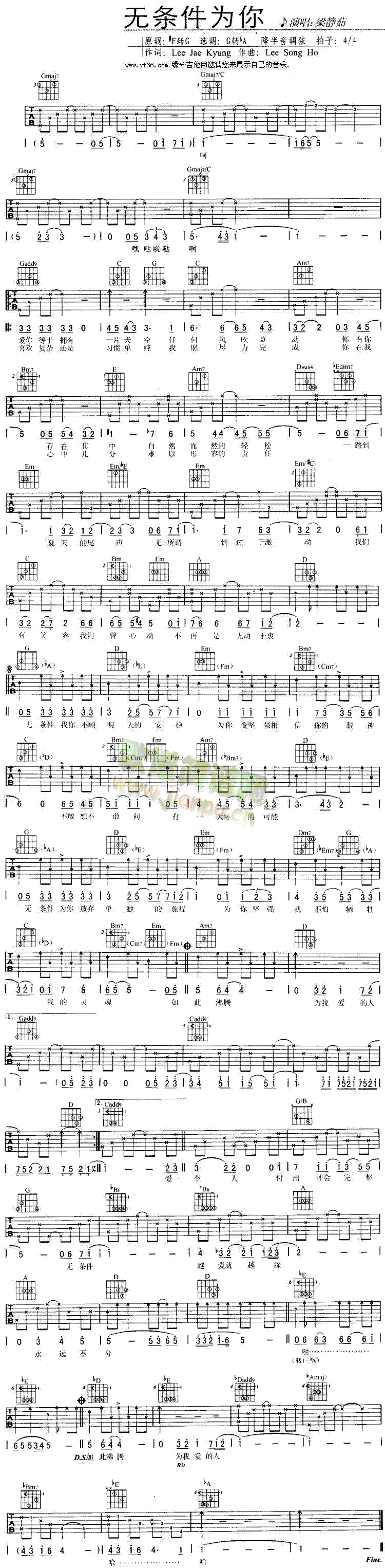 [其他乐谱]无条件为你 歌曲类 简谱 梁静茹