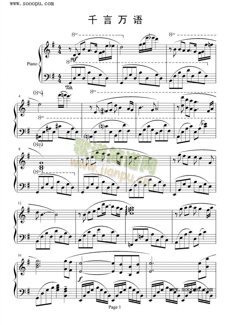 [钢琴谱]千言万语 未知