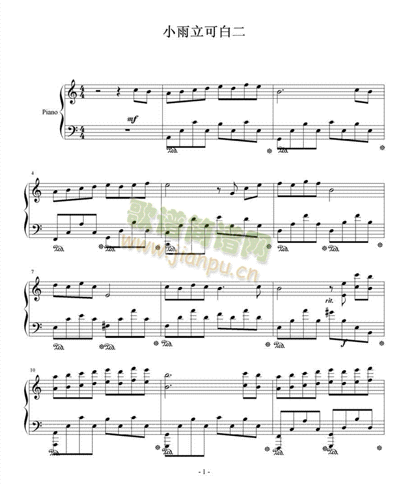 [二字歌谱]小雨(《梦的衣裳》插曲) 鞠鹏