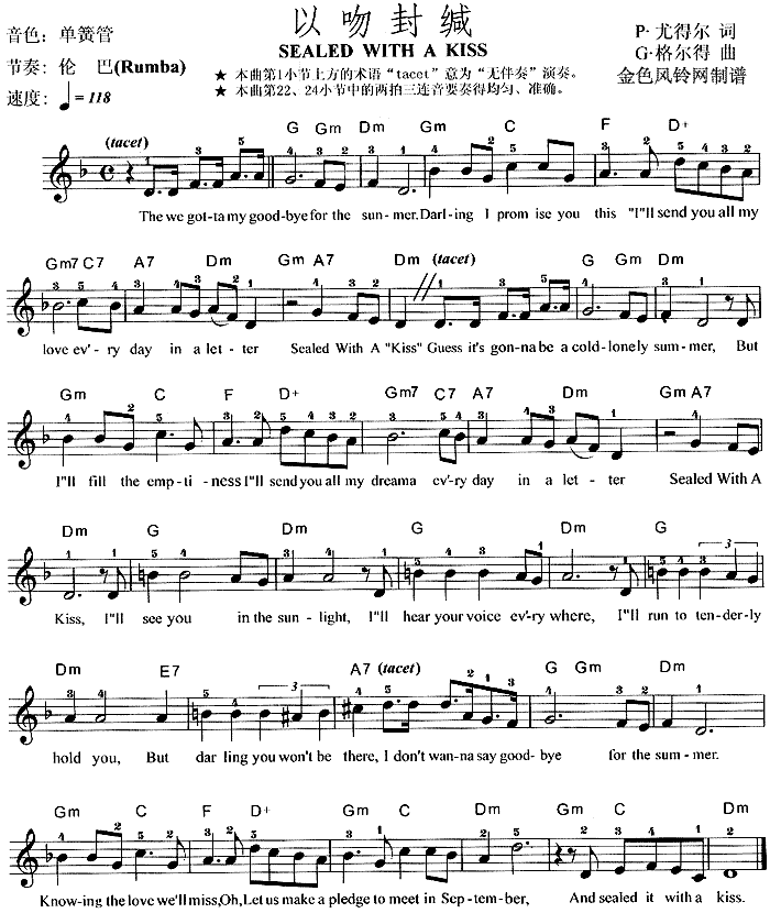 [吉他谱]Sealed With A Kiss 以吻封缄 未知