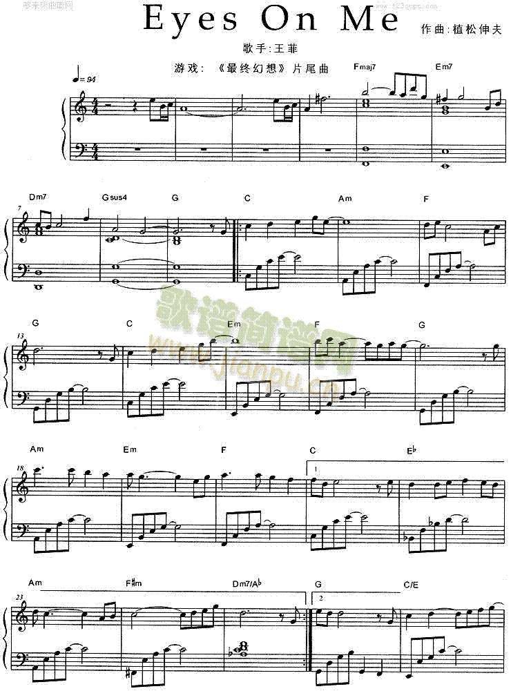 [钢琴谱]Eyes On Me(游戏《最终幻想》片尾曲) 王菲