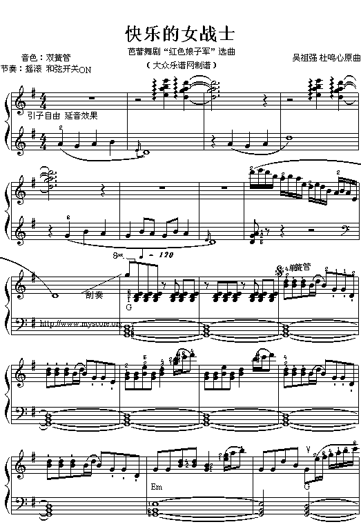 [电子琴谱]快乐的女战士(《红色娘子军》选曲)[电子琴谱] 未知