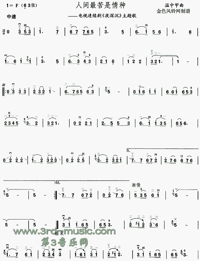[二胡谱]人间最苦是情种(《夜深沉》主题歌)[二胡曲谱] 未知