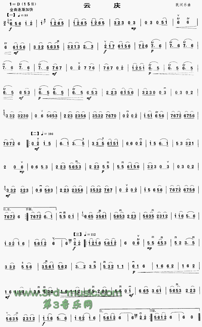 [其他乐谱]云庆 民乐类 二胡 民间乐曲