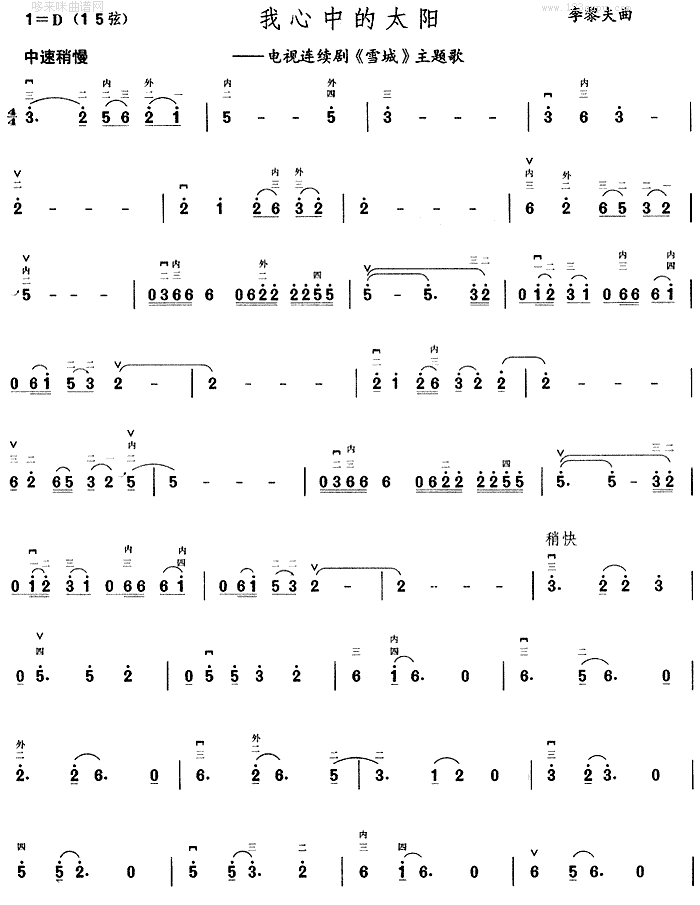 [二胡谱]心中的太阳(《雪城》主题歌)[二胡曲谱] 未知