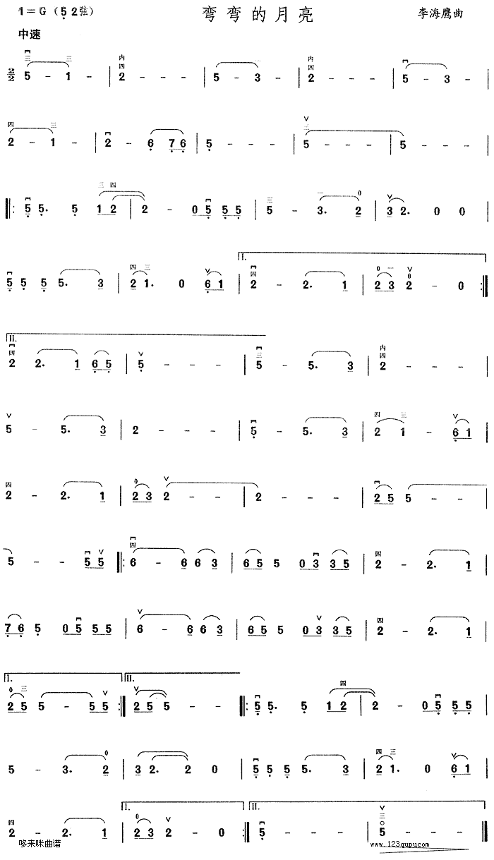 [二胡谱]弯弯的月亮[二胡曲谱] 未知