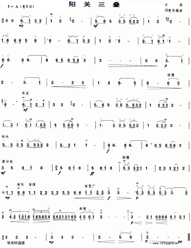[四字歌谱]阳关三叠(简谱/五线谱对照)