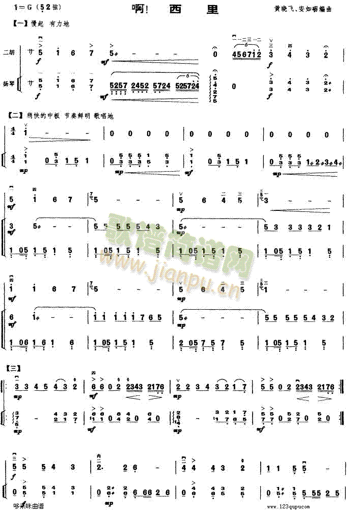 [二胡谱]啊,西里[二胡曲谱] 未知