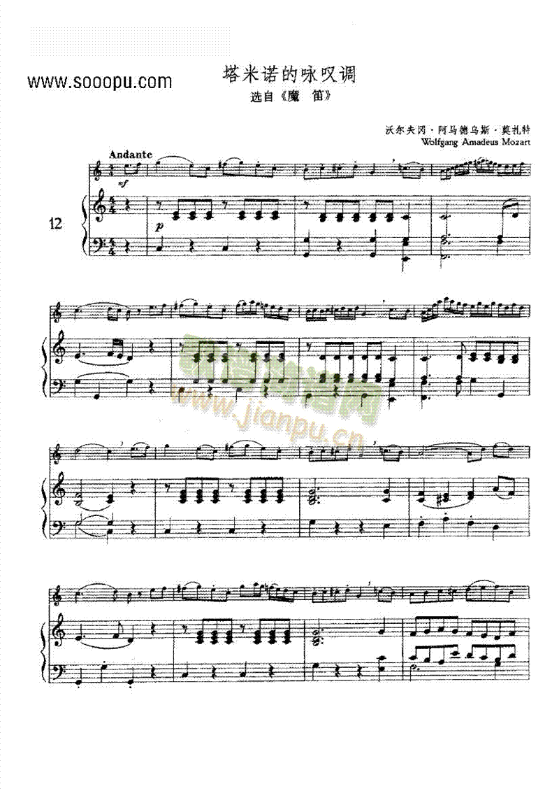[笛箫谱]塔米诺的咏叹调 管乐类 长笛 莫扎特