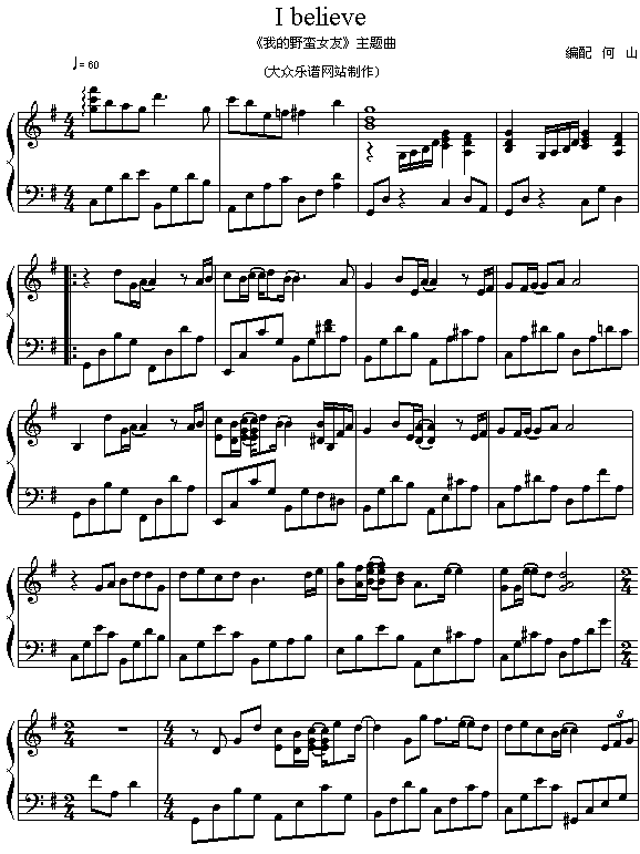 [钢琴谱]I believe(《我的野蛮女友》主题歌)[钢琴曲谱] 未知