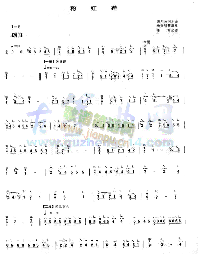 [古筝扬琴谱]粉红莲-潮州筝曲 未知