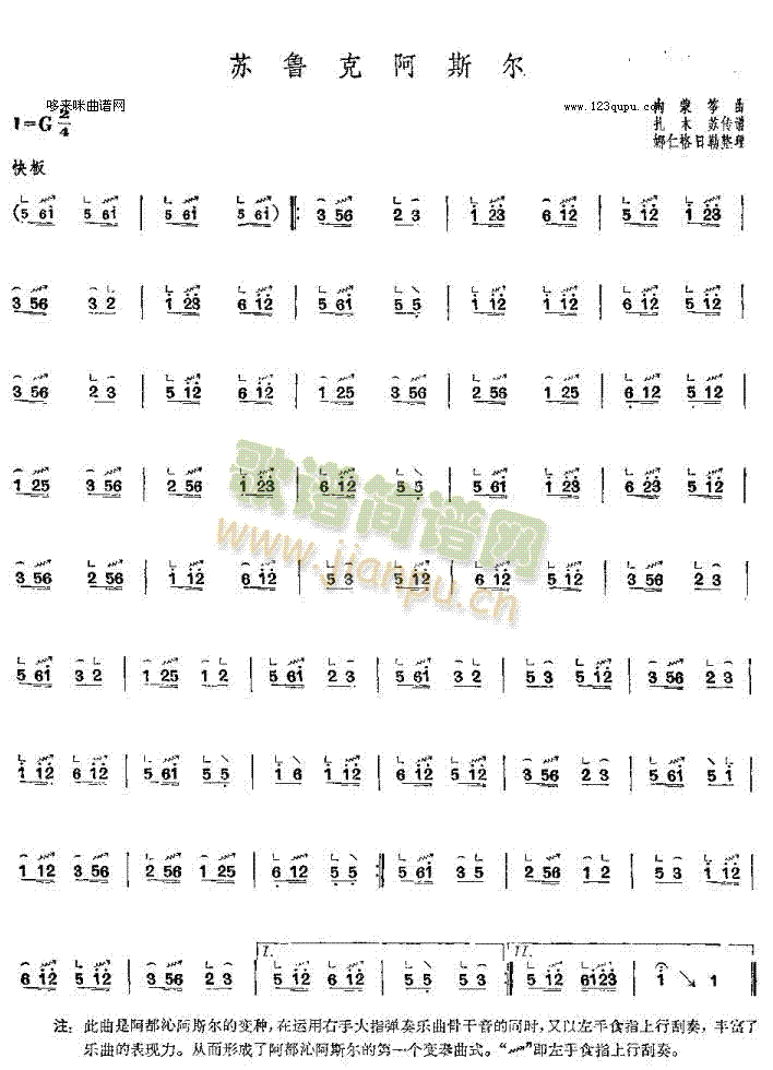 [古筝扬琴谱]苏鲁克阿斯尔-内蒙筝曲 未知